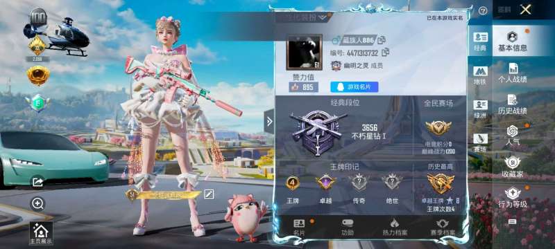 安卓手Q-4王牌印记-4粉装-4特效枪-3载具-46714热力值-118套装-131枪皮-1卓越印记