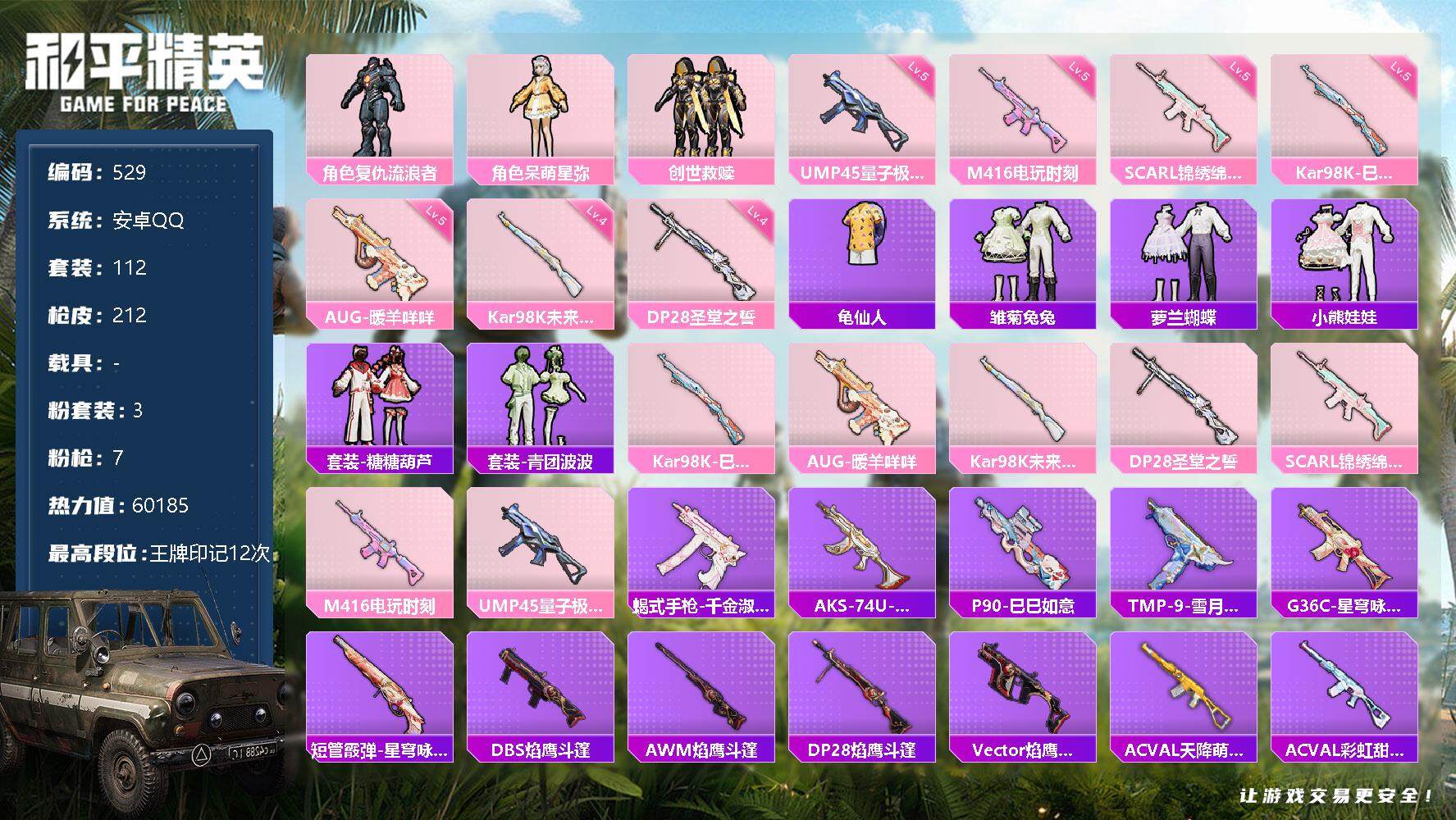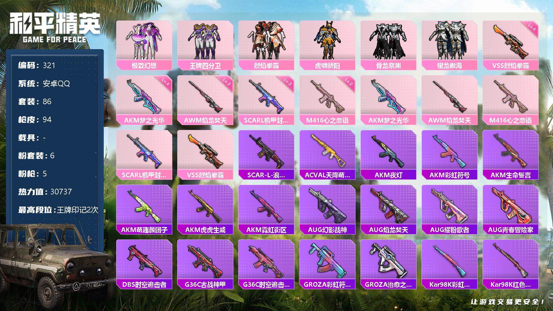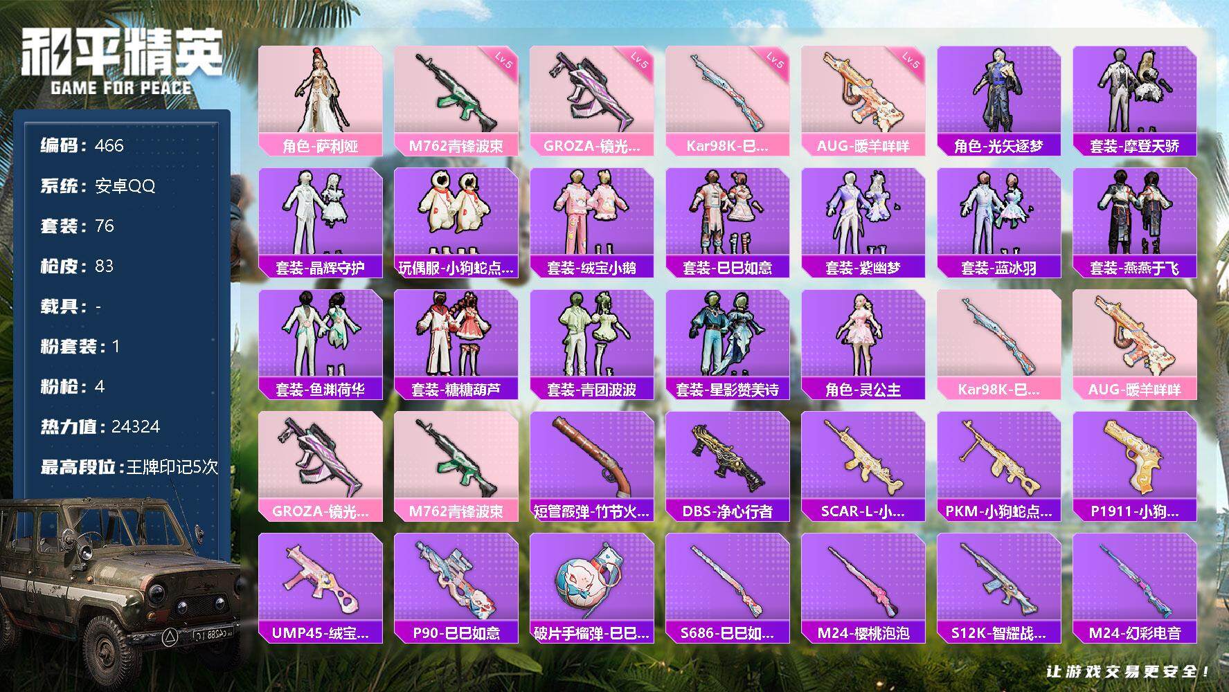 hs45884 苹果手Q-15王牌印记-12粉装-7特效枪-1载具-83847热力值-196套装-2