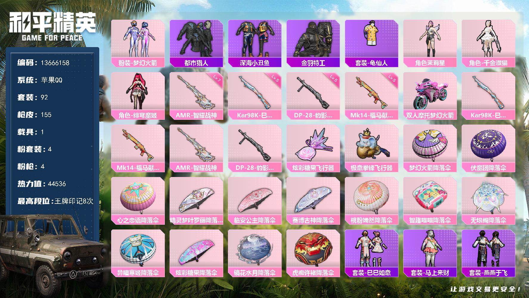 92套装/枪械4/装备199/载具1/战备122/王牌印记8/热力值44536