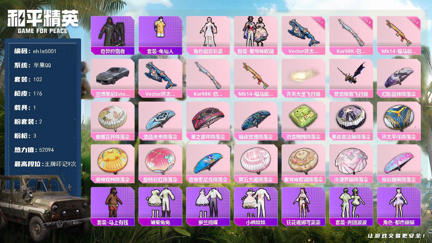 【mhlm4997】安卓 手Q-1粉装-4特效枪-0载具-0粉色飞行器-228