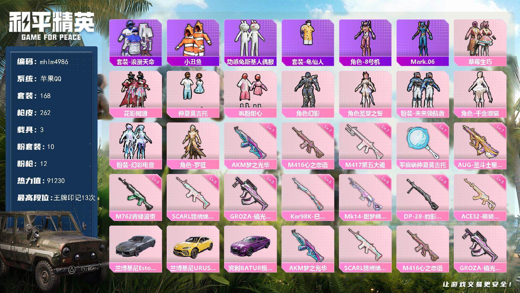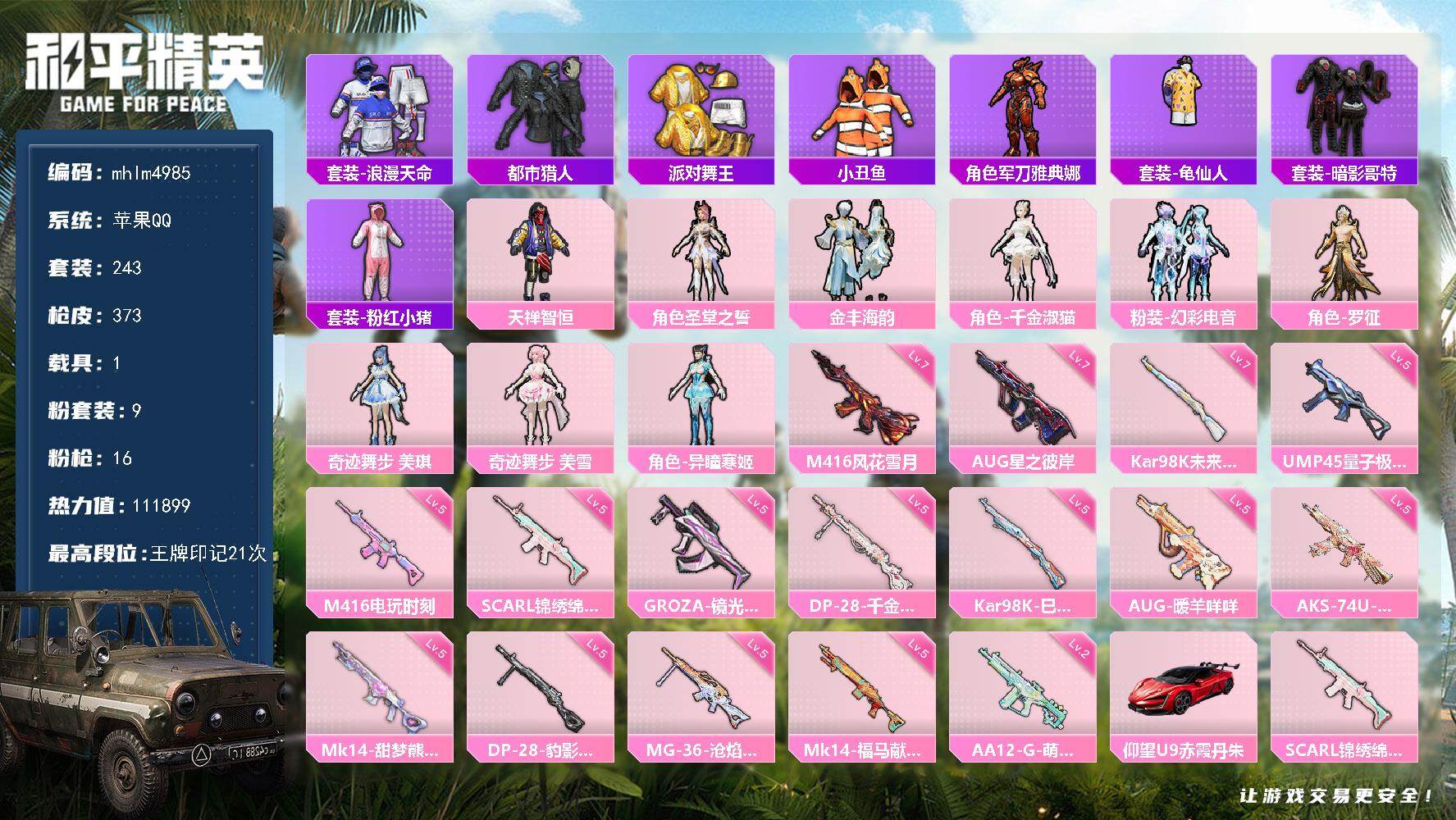 【mhlm4993】苹果 手Q-0粉装-3特效枪-0载具-0粉色飞行器-484