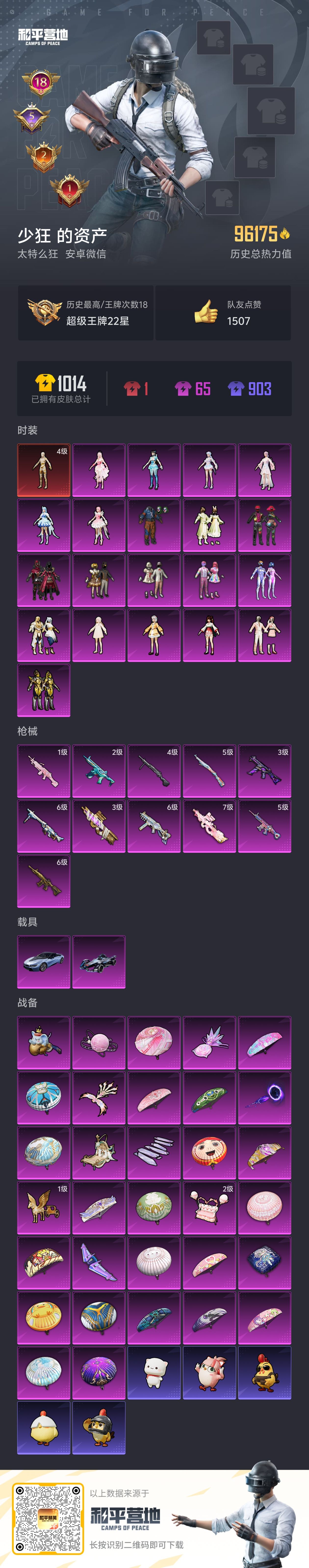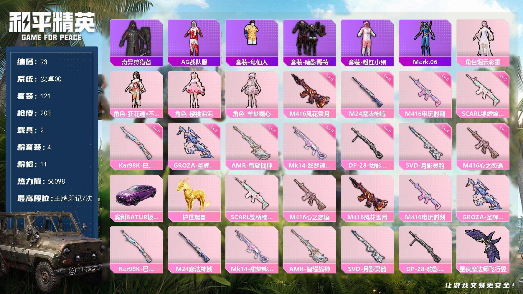 hs52114 安卓手Q-13王牌印记-9粉装-5特效枪-1载具-71277热力值-207套装-21