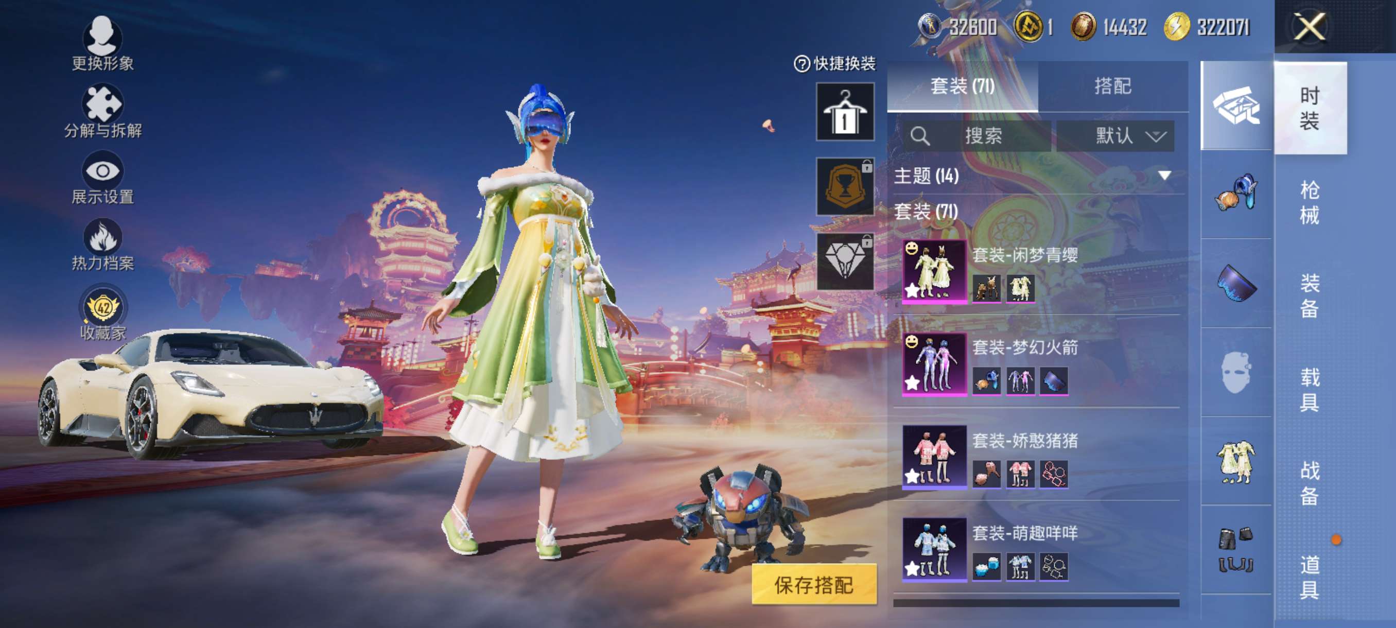 可二次-14王牌印记-218套装1红装4级21粉套有梦幻火箭-12升级枪1把9级3淘汰效果-7载具4滑翔尾迹-111747热力值