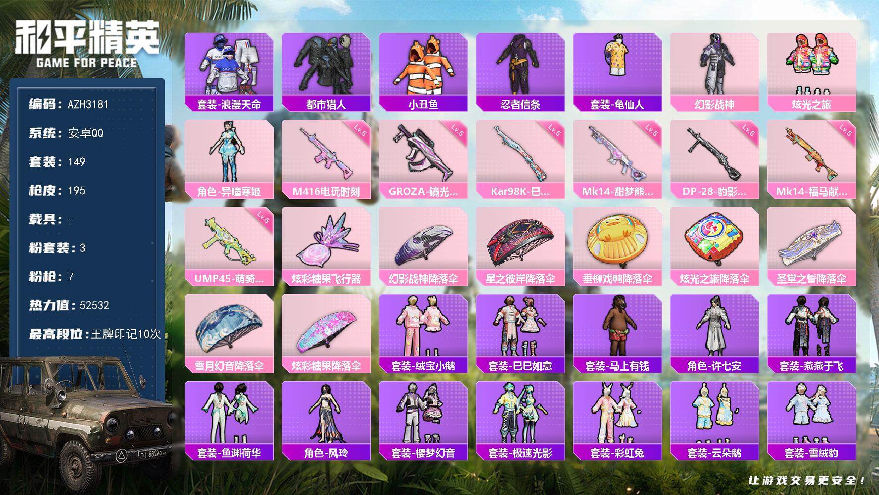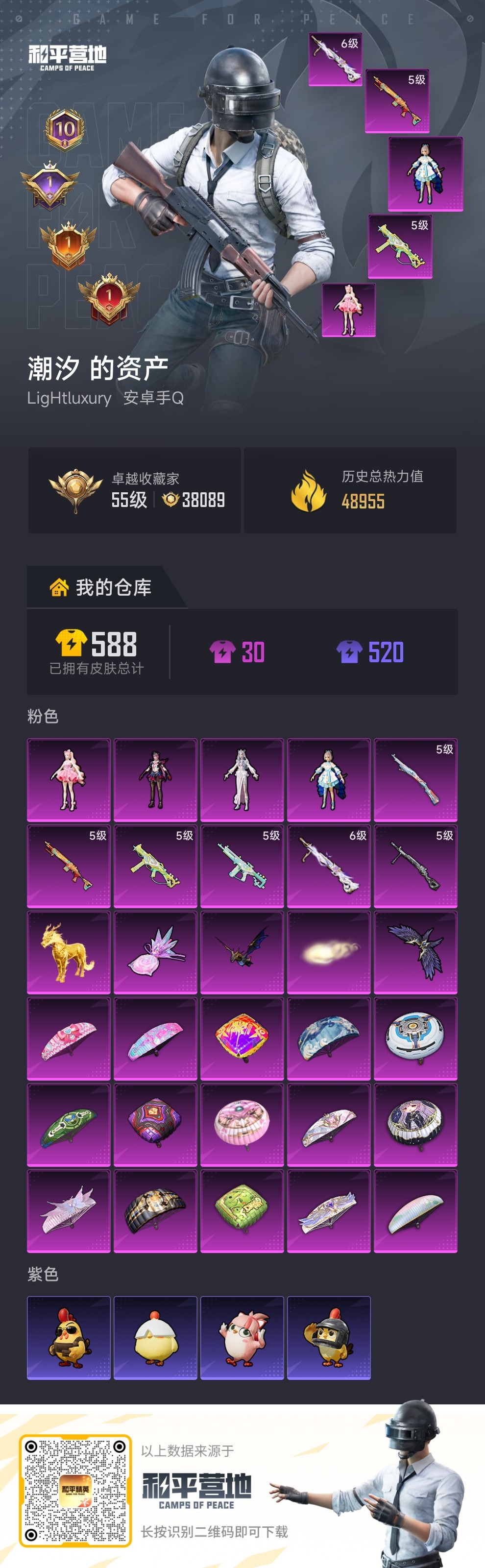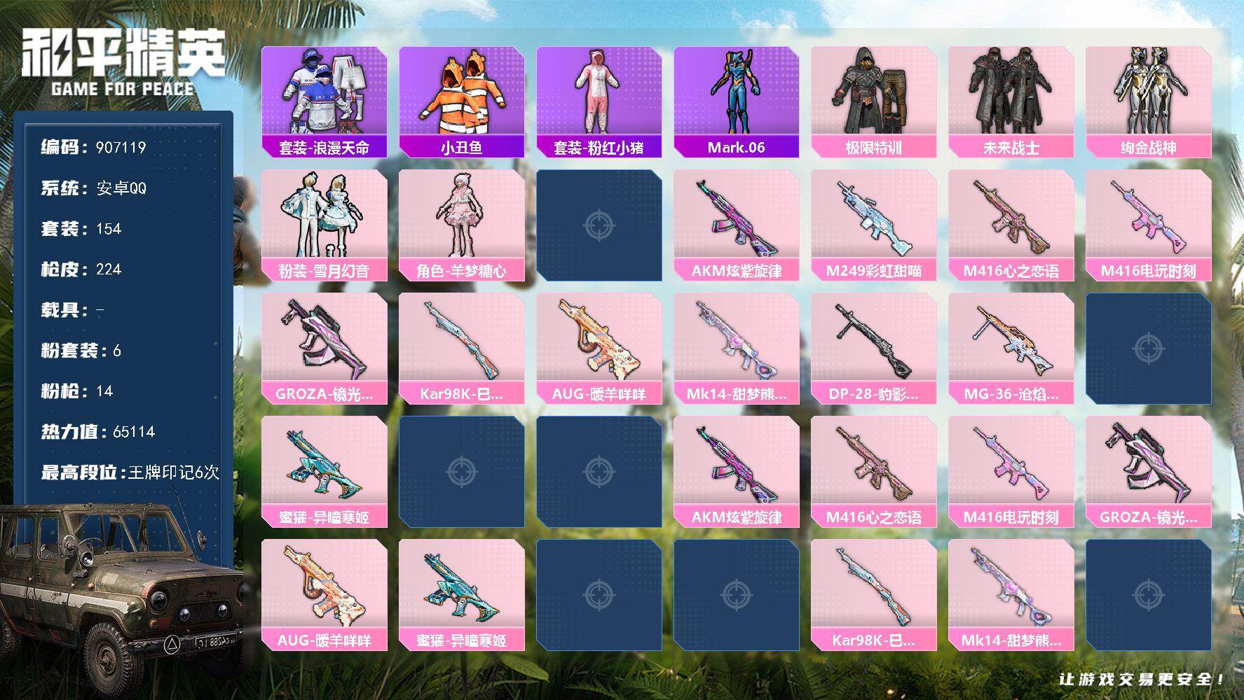 热力值:48660,收藏分:33945,3粉装,3粉枪,1载具,18粉色战备