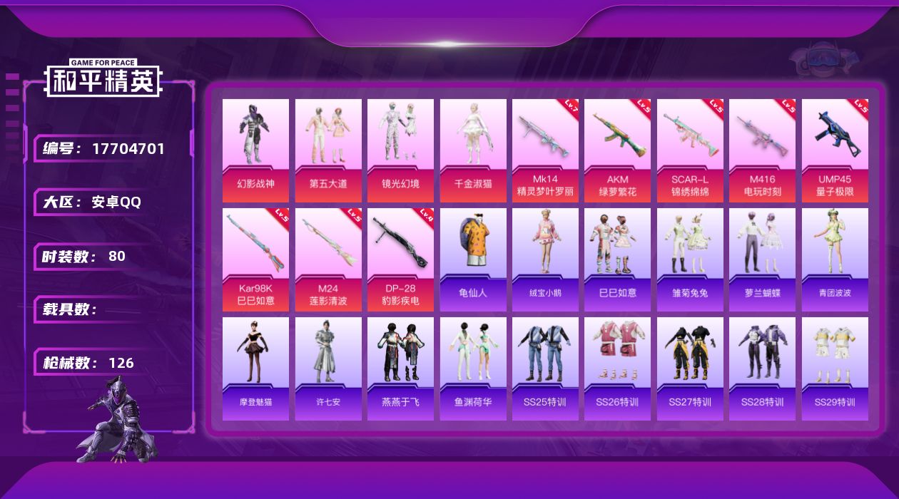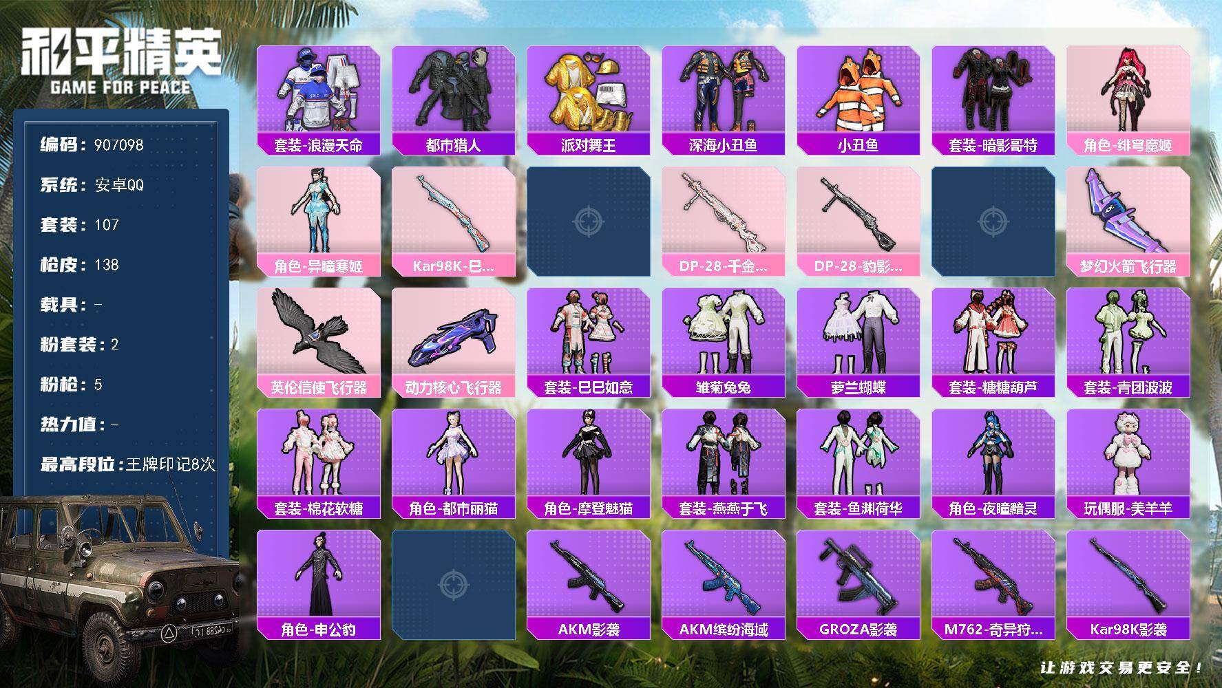 安卓手Q-7王牌印记-1红装-5粉装-9特效枪-4载具-5793