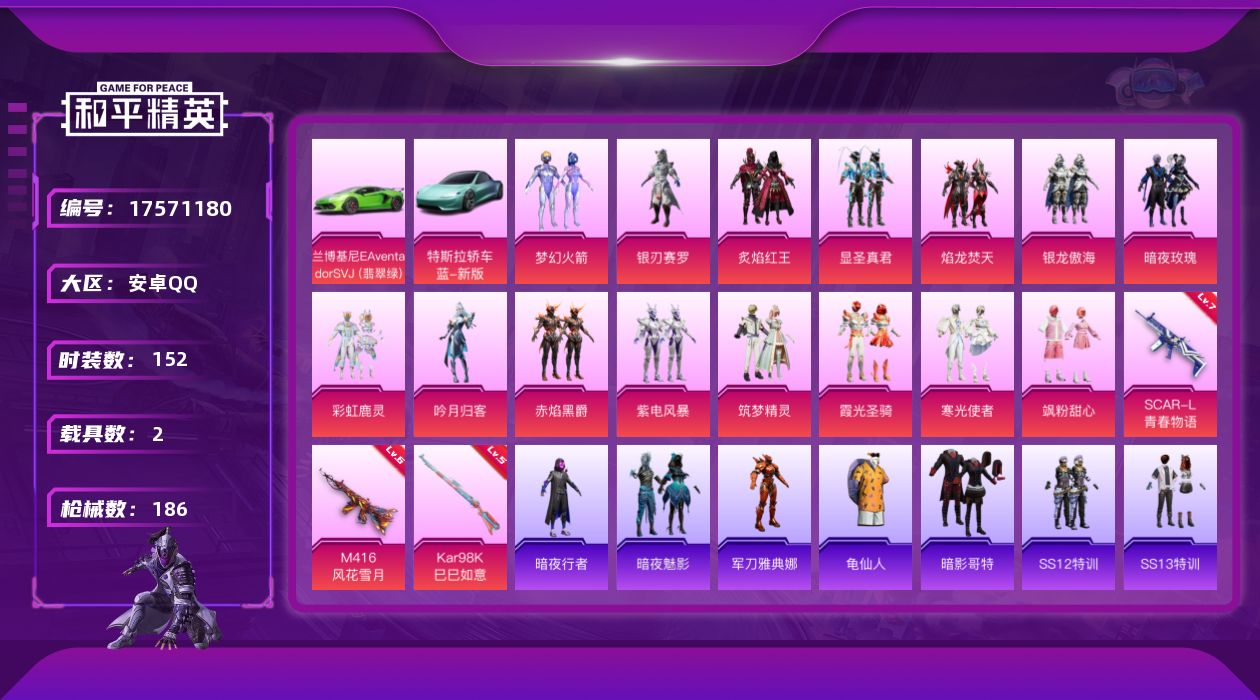 15粉装-3特效枪-2载具-4粉色飞行器-73633热力值-6王牌印记-152套装-186枪皮