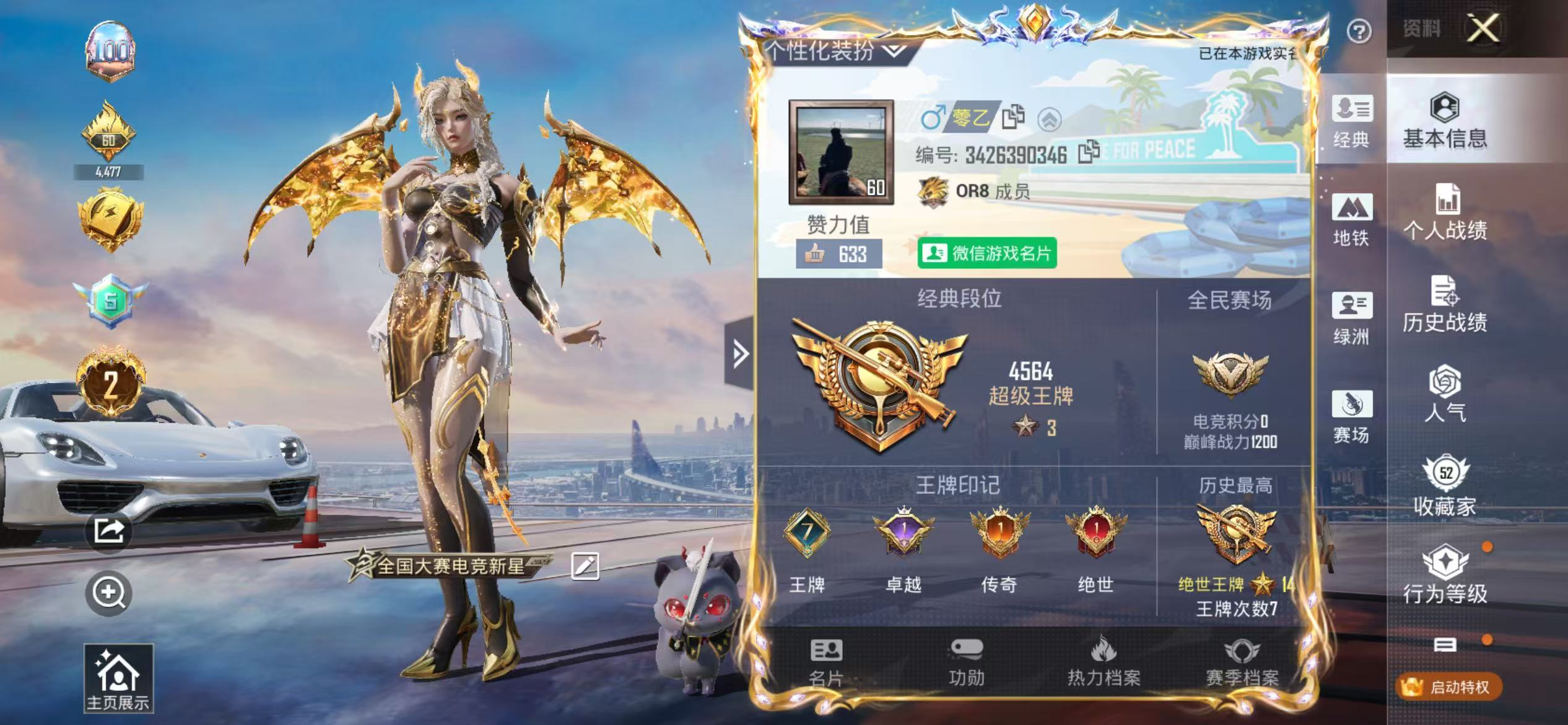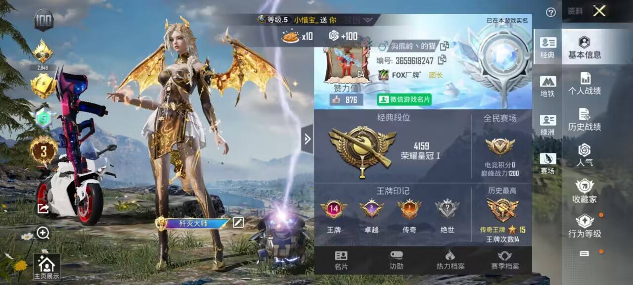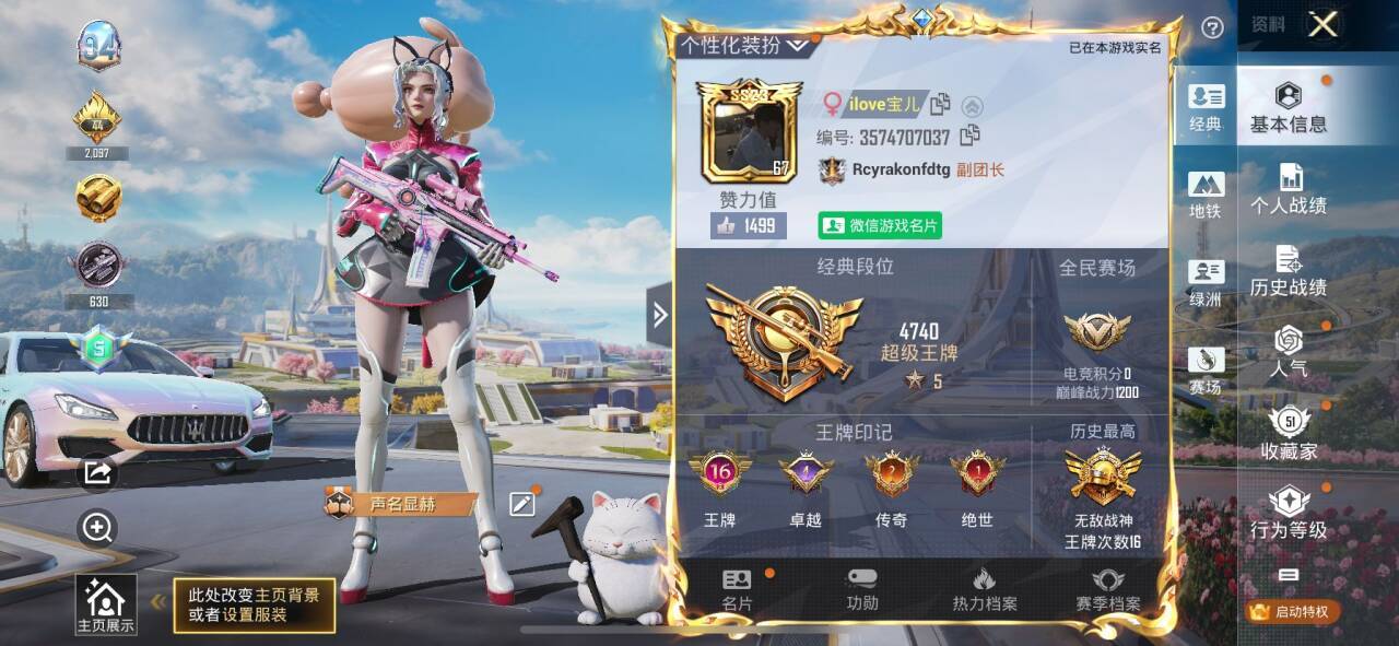 和平精英【苹果微信】苹果v-16王牌印记-有战神框-1粉装-3特效枪-1载具-43145热力值-74套装-125枪皮-