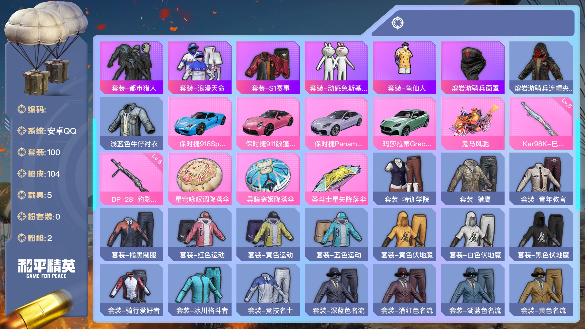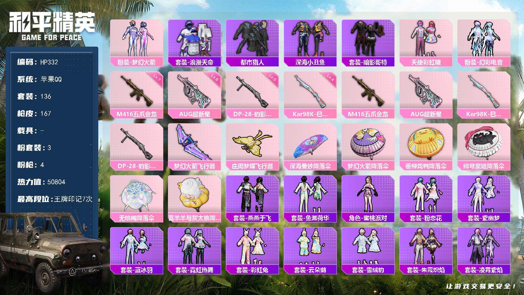 和平精英【苹果QQ】136套装/枪械4/装备167/战备117