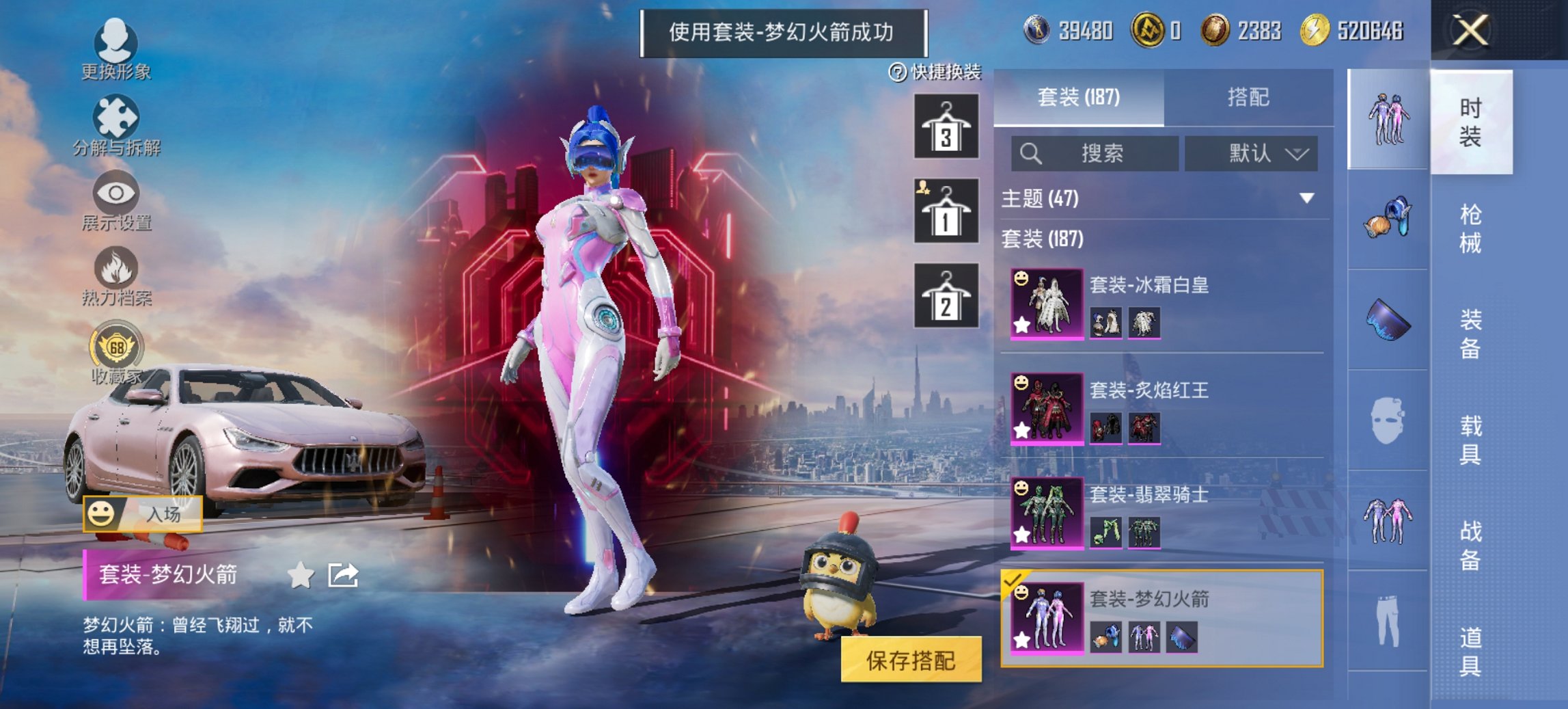 5粉装-11特效枪-0载具-2粉色飞行器-78267热力值-8王牌印记-184套装-267枪皮