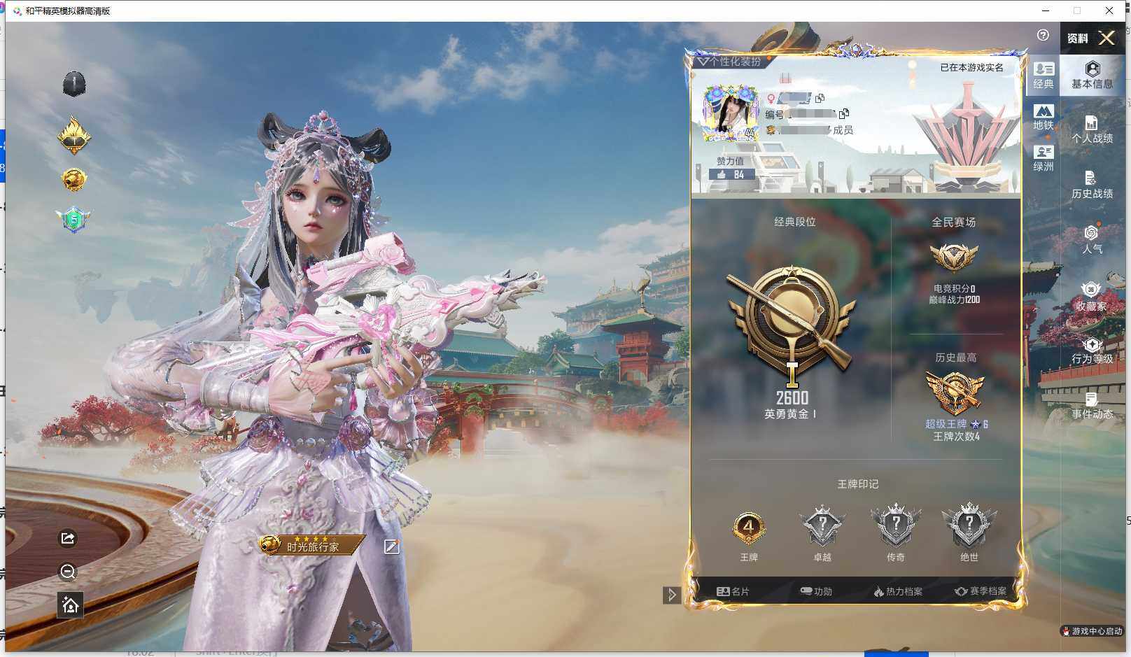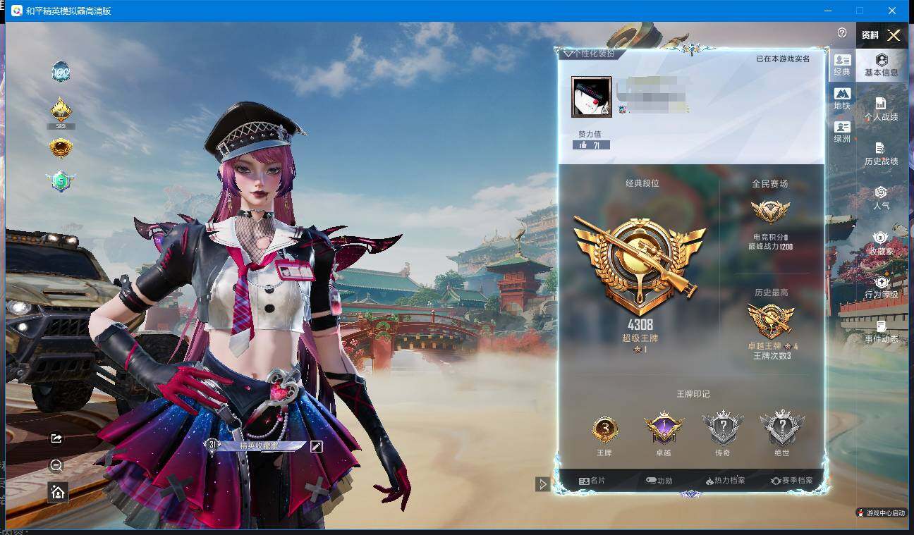 实名: 可修改 时装数: 184 枪械数: 73 战备数: 61 热门装扮: