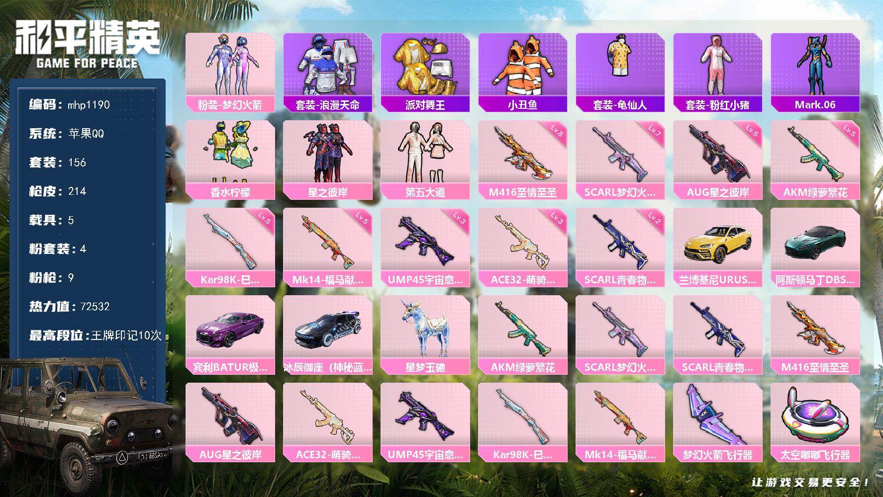 【1红装3级烛九 4粉装9特效枪2载具】 苹果V区-929