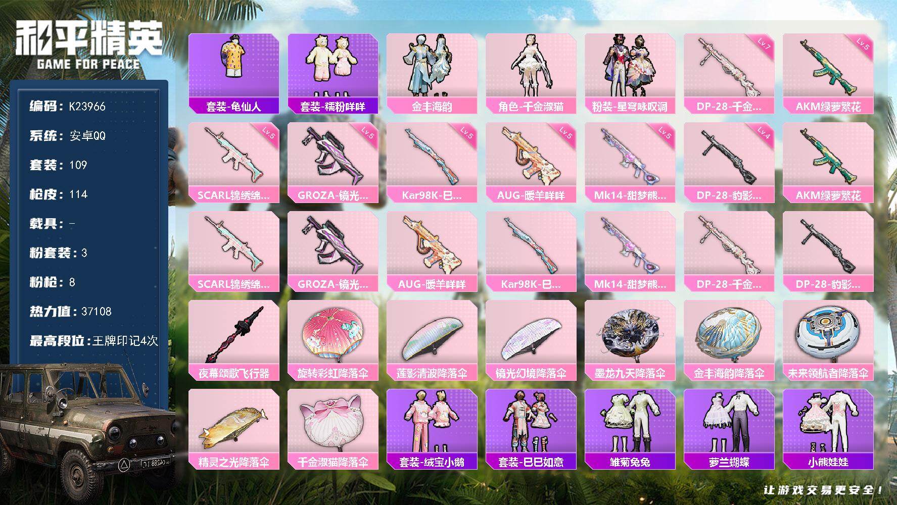 安卓 手Q-3粉装-8特效枪-0载具-1粉色飞行器-37108热力值-4王牌印记
