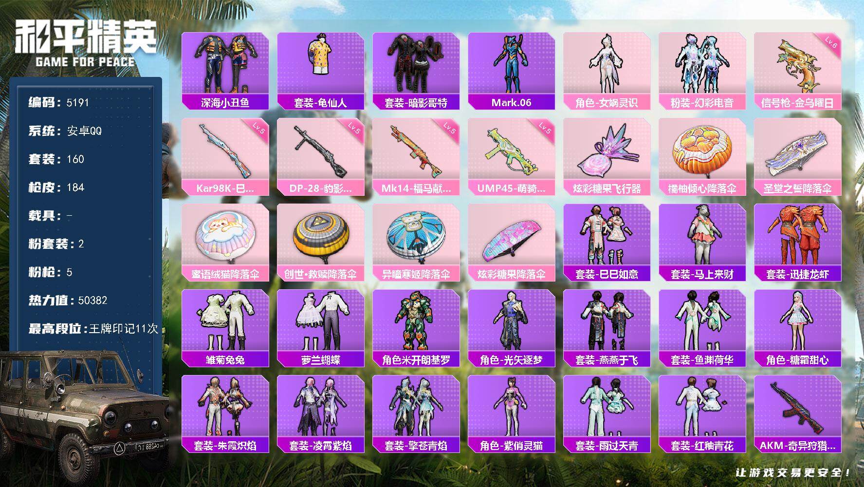 安卓 手Q-2粉装-4特效枪-1载具-1粉色飞行器-50594热力值-8王牌印