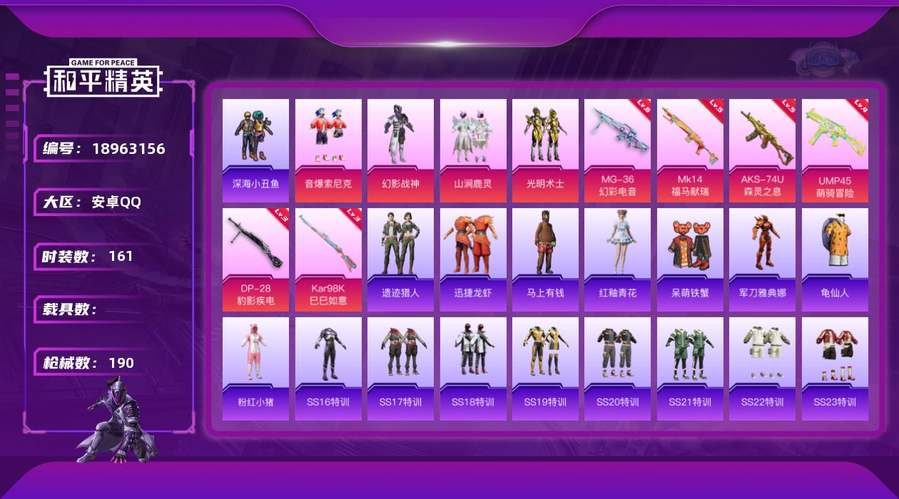 安卓 手Q-2粉装-5特效枪-1载具-1粉色飞行器-39883热力值-6王牌印