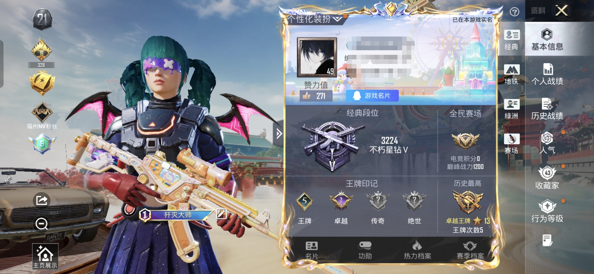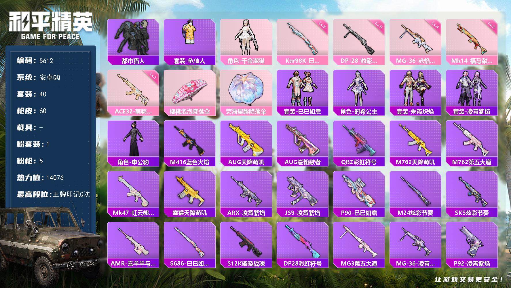 满级地铁安卓 手Q-4粉装-3特效枪-0载具-1粉色飞行器-32714热力值-