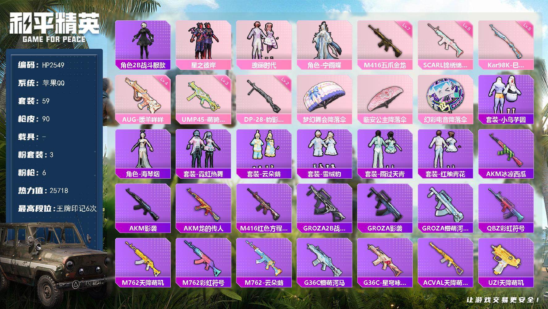 2粉装-6特效枪-0载具-2粉色飞行器-31788热力值-5王牌印记-97套装-120枪皮