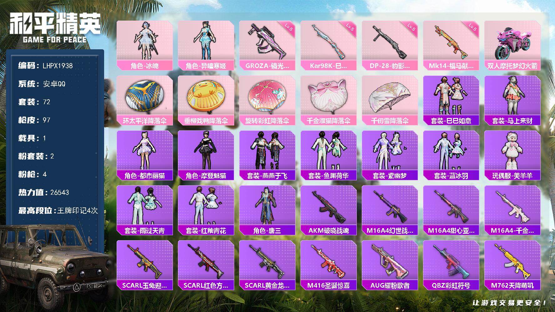 2粉装-4特效枪-1载具-26543热力值-4王牌印记-72套装-97枪皮