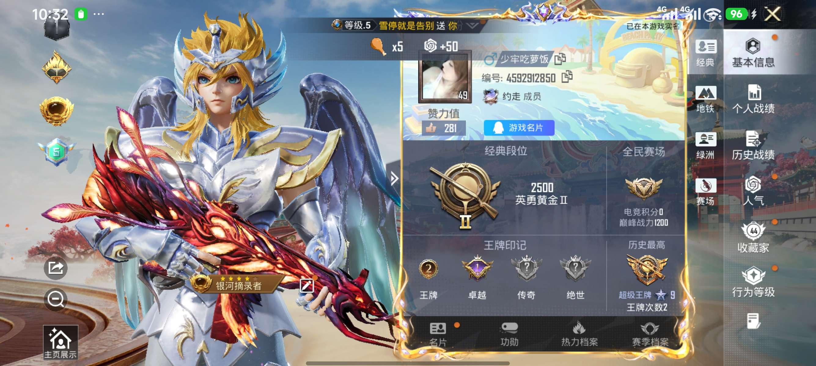 172套装/枪械7/装备228/战备134/王牌印记9/热力值60785/五级