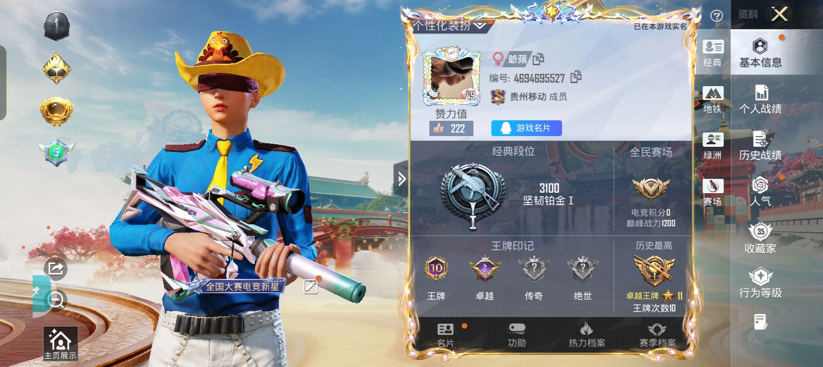 173套装/枪械6/装备242/战备174/王牌印记9/热力值58166/