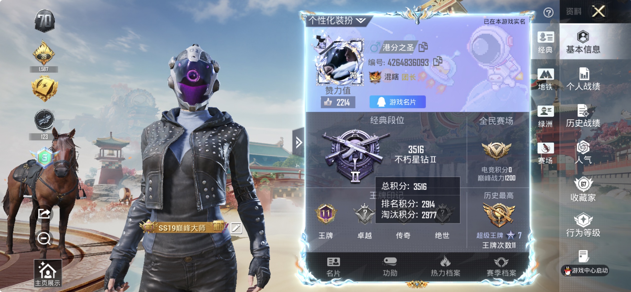 69套装/枪械6/装备98/载具1/战备66/王牌印记9/热力值