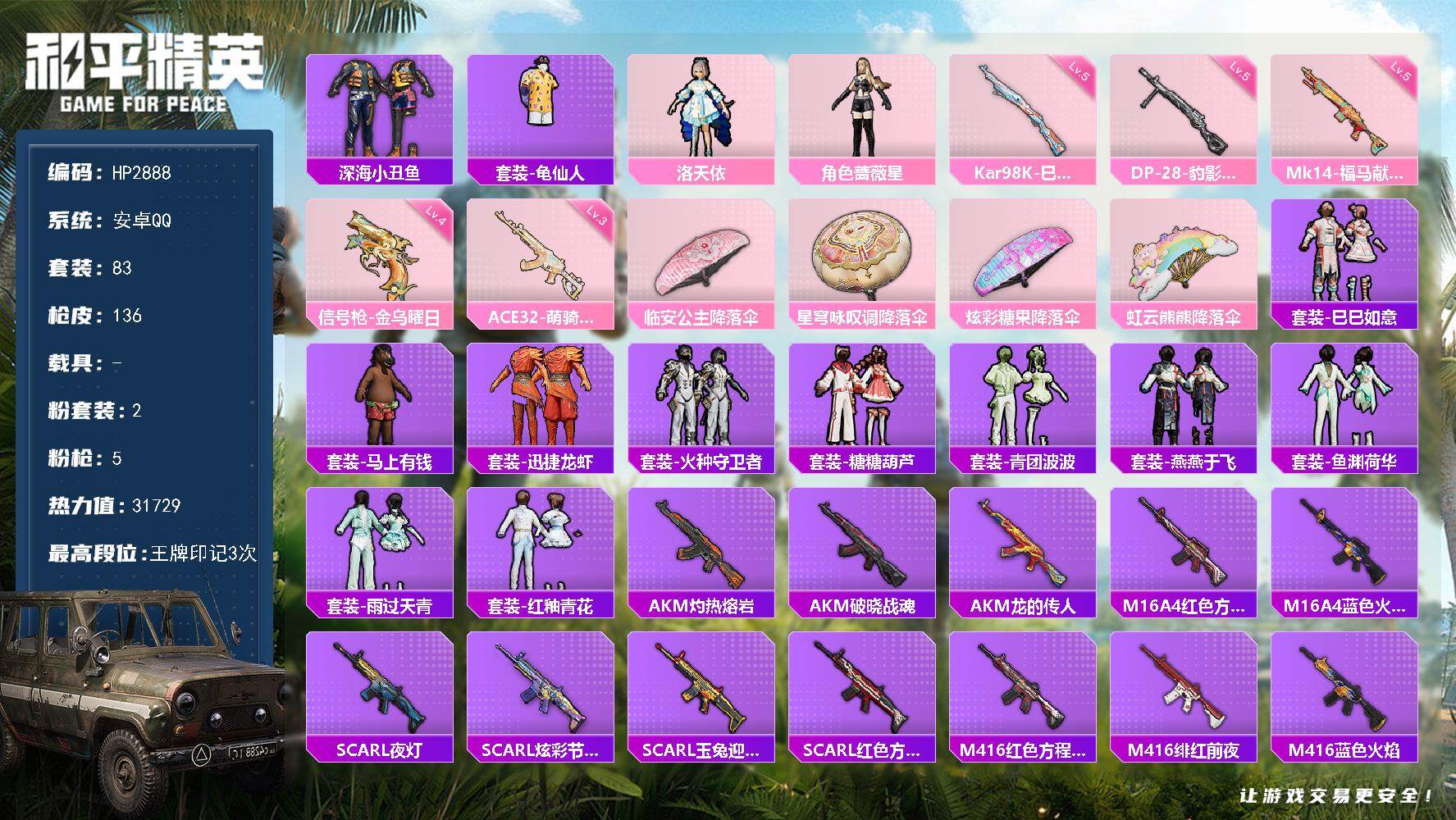 【商品标题】:安卓 手Q-2粉装-2特效枪-0载具-26913热力值-1印记-