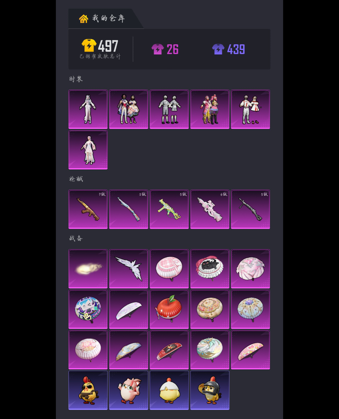 6粉装-4特效枪-0载具-0粉色飞行器-18478热力值-2王牌印记-48套装-53枪皮