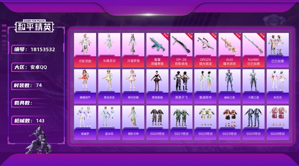 安卓 手Q-2粉装-4特效枪-0载具-0粉色飞行器-47177热力值-12王牌