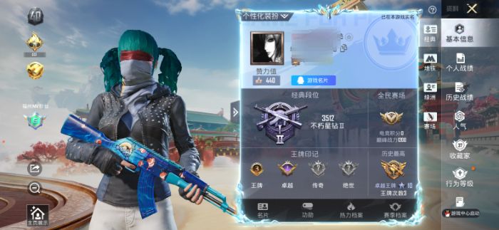实名: 可修改 时装数: 484 枪械数: 141 战备数: 102 热门装扮
