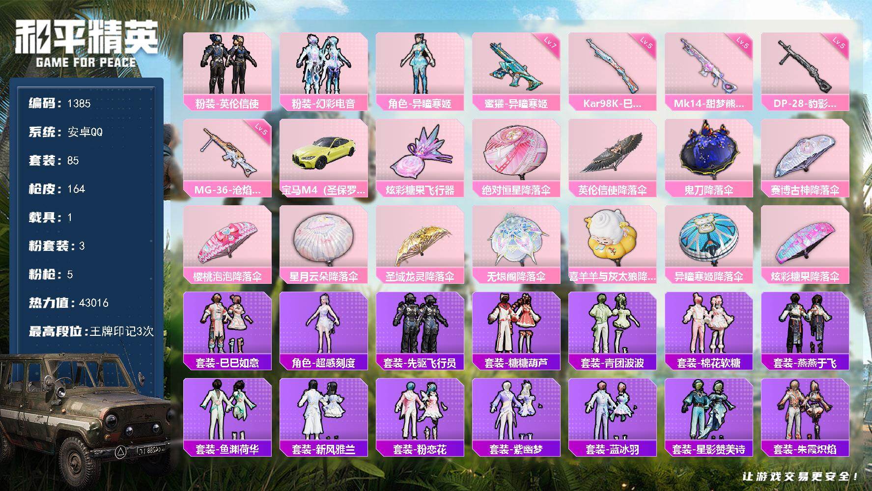 安卓 手Q-2粉装-9特效枪-0载具-2粉色飞行器-53191热力值-15王牌