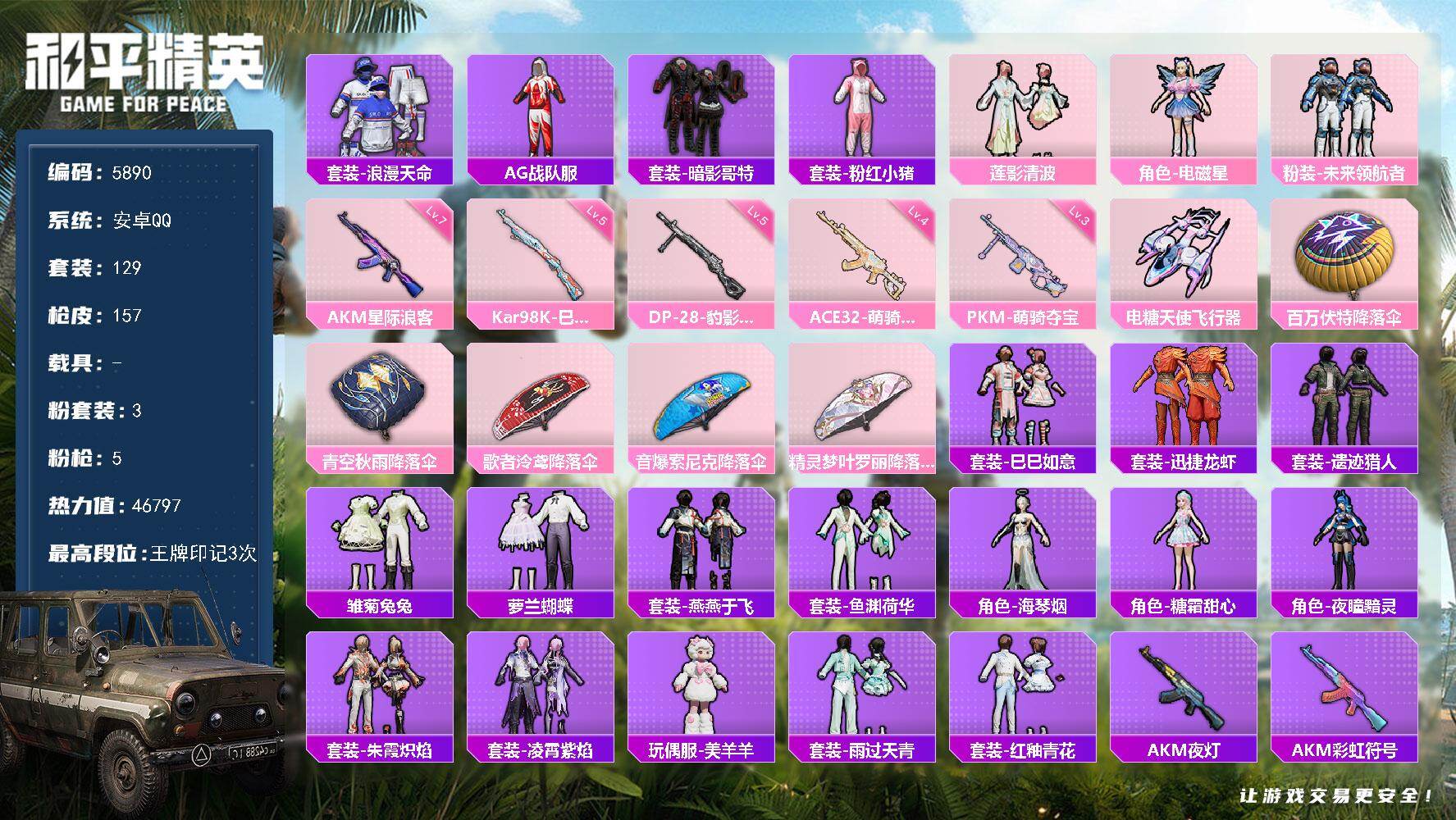 hs63242 安卓手Q-5王牌印记-3粉装-7特效枪-37671热力值-114套装-134枪皮-2