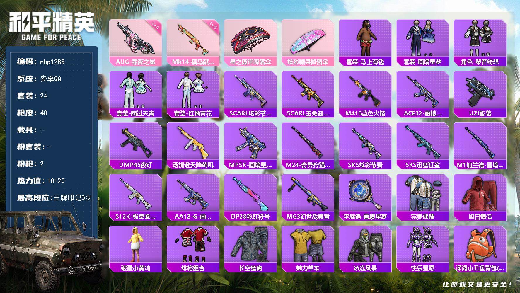 0载具-47套装-59枪皮-苹果手Q-地铁打手号-满天赋-
