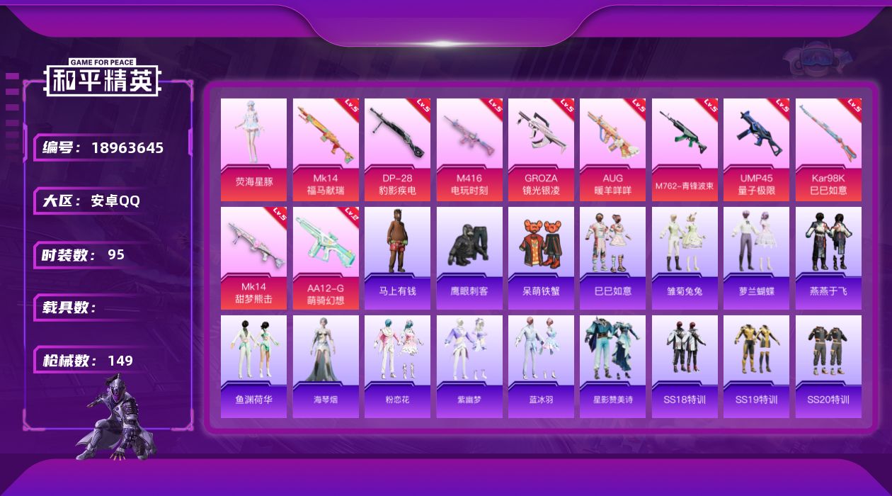 安卓 手Q-0粉装-1特效枪-0载具-0粉色飞行器-812热力值-0王牌印记-