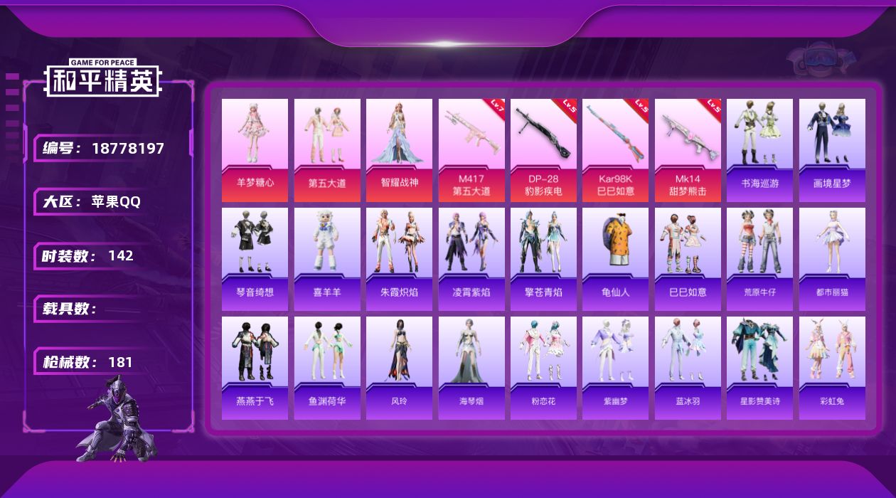 苹果 手Q-0粉装-9特效枪-0载具-2粉色飞行器-32627热力值-5王牌印