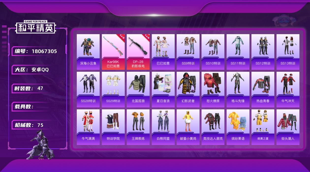 安卓 手Q-0粉装-2特效枪-0载具-2粉色飞行器-6980热力值-2王牌印记