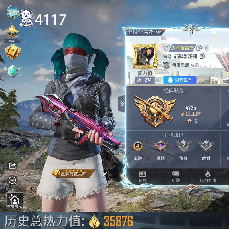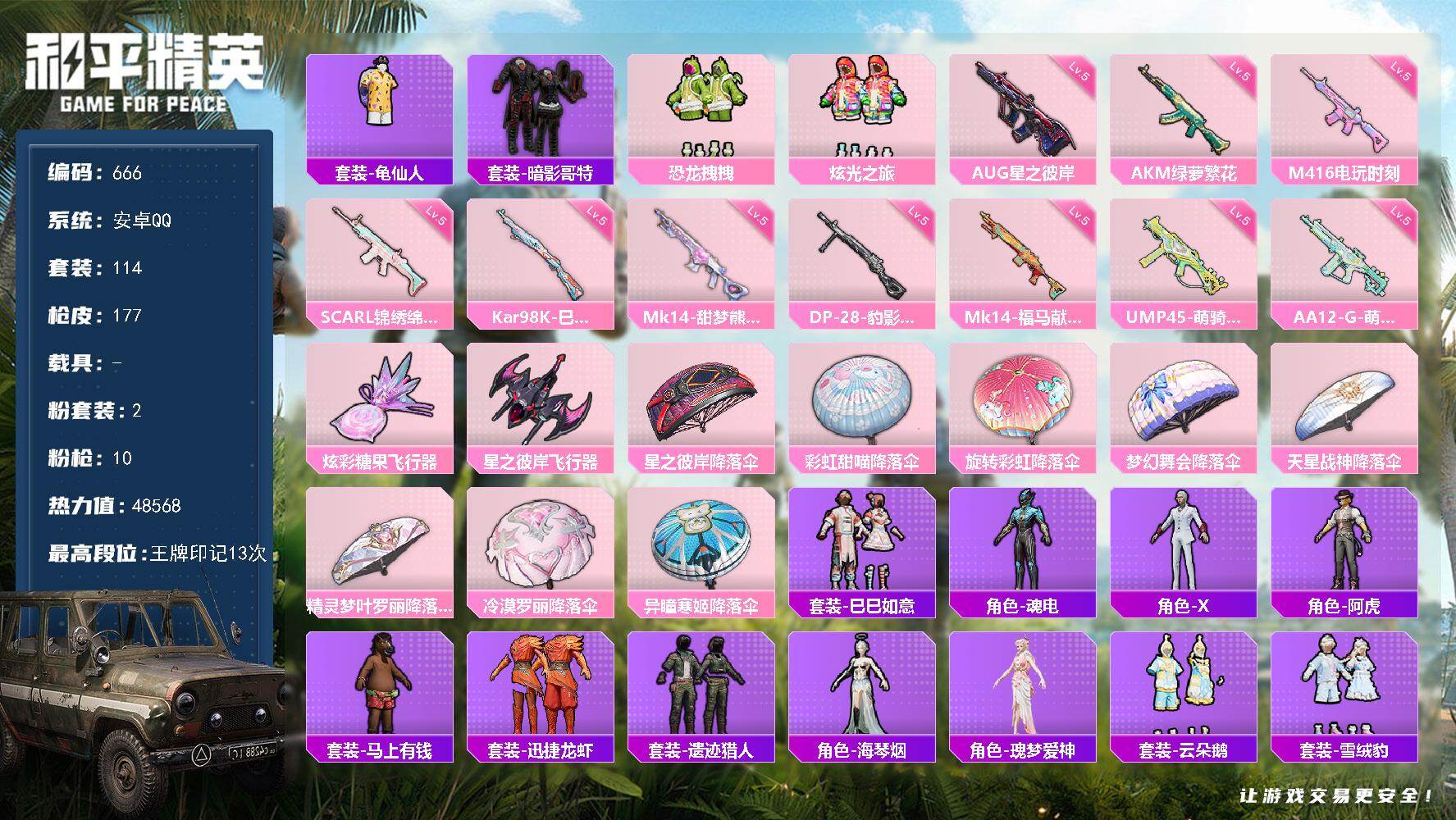 a4352/安卓微/3王牌印记-1粉装-1特效枪-1载具-21872热力值-41套装-69枪皮-3