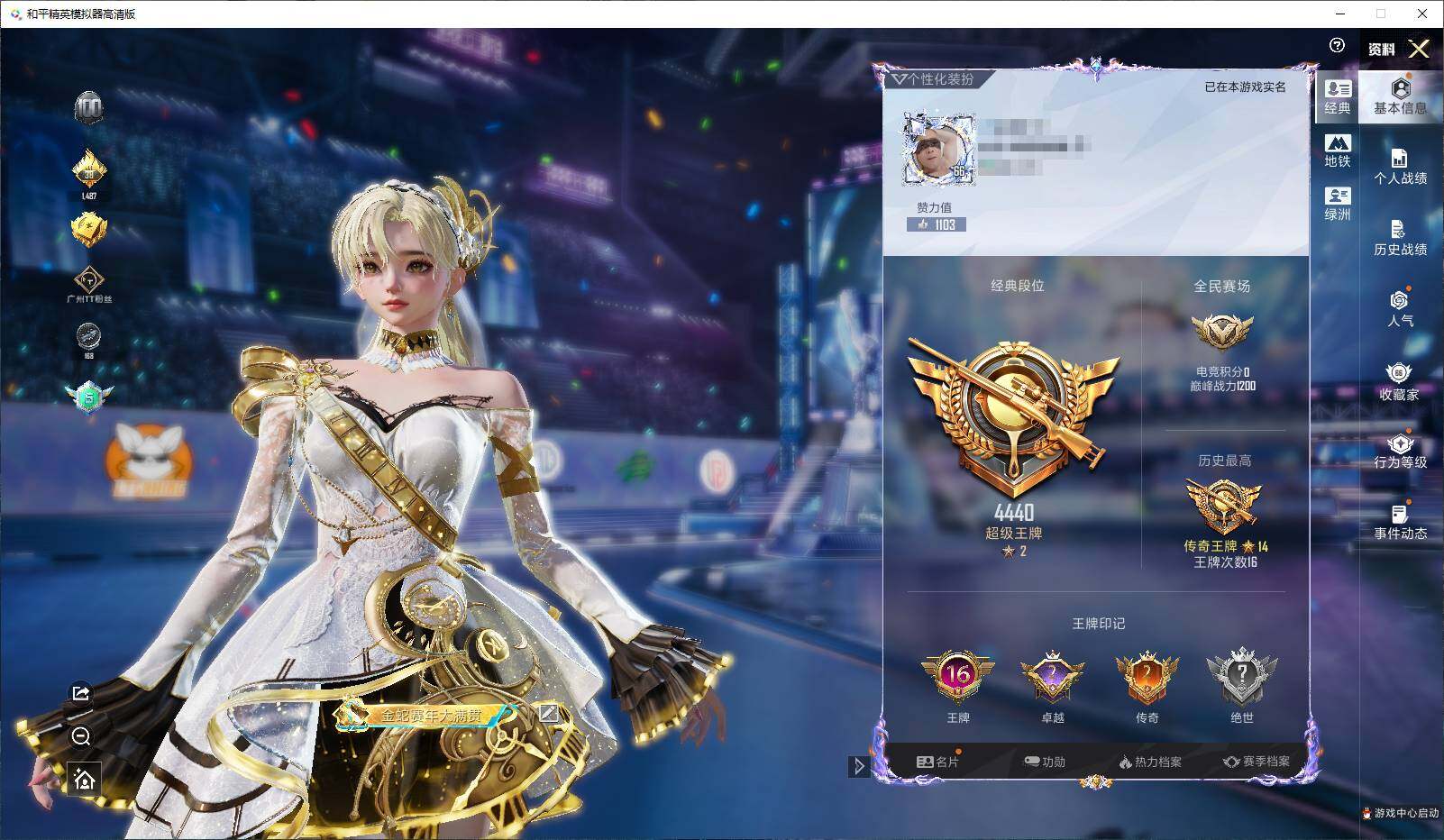 实名: 可修改 时装数: 644 枪械数: 246 战备数: 179 热门装扮
