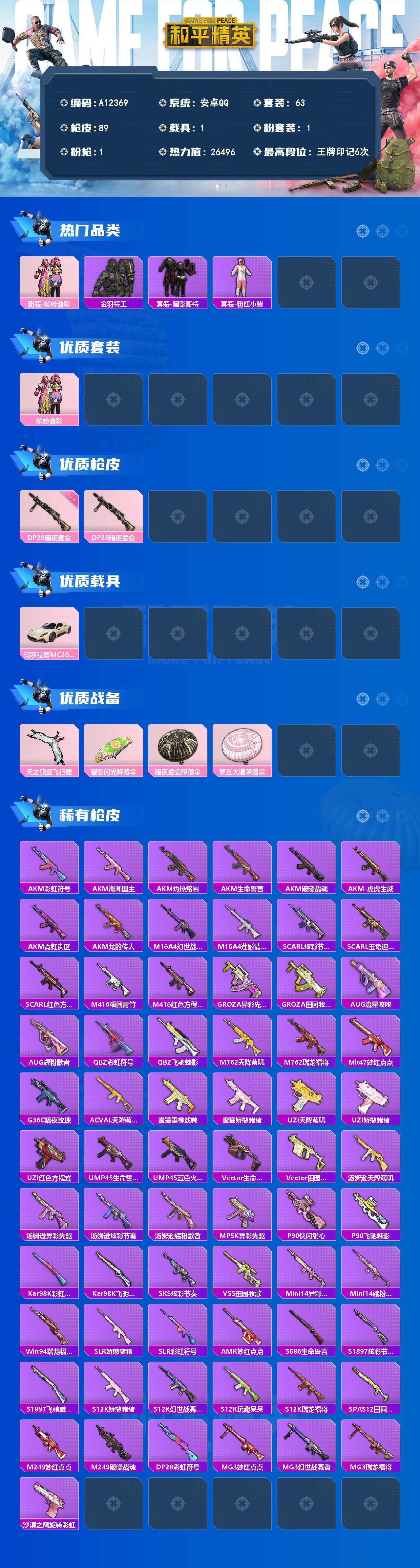 4王牌印记-5粉装-9特效枪-35418热力值-66套装-111枪皮