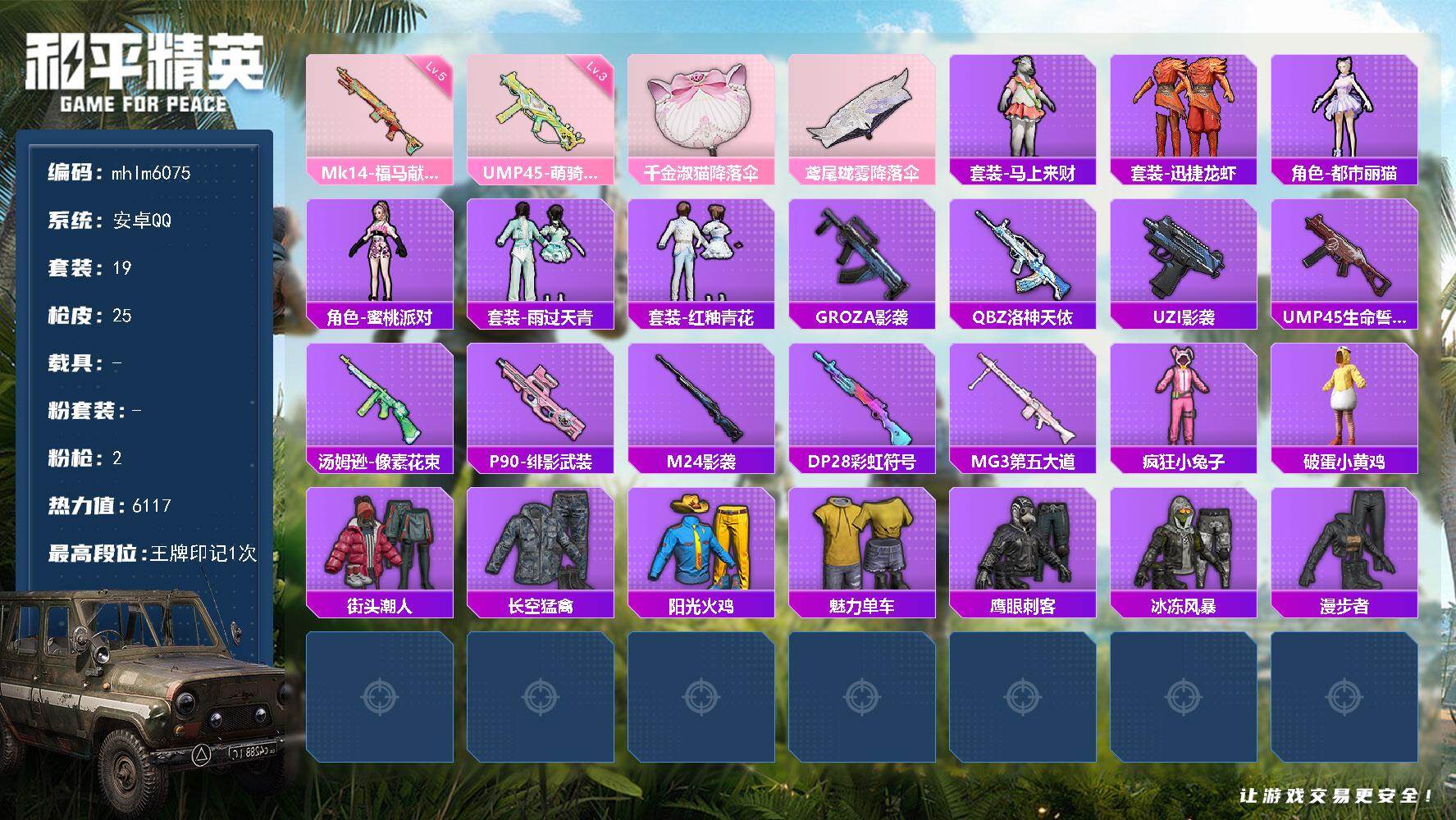 苹果 手Q-1粉装-1特效枪-0载具-1粉色飞行器-6969热力值-1王牌印记