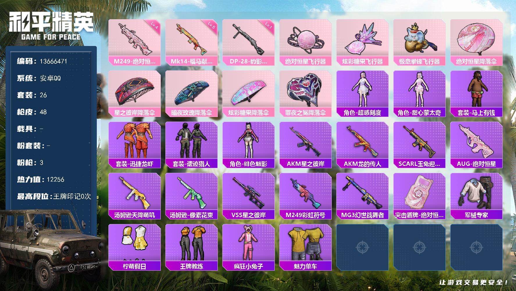 可二次实名【4特效枪 秒换绑不用等】 安卓Q区-13512热力值-28套装-6