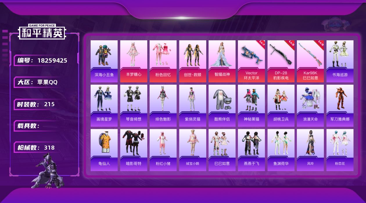 6714 可二 65级 1载具6粉装5特效枪189套装212枪皮 11印记 【1
