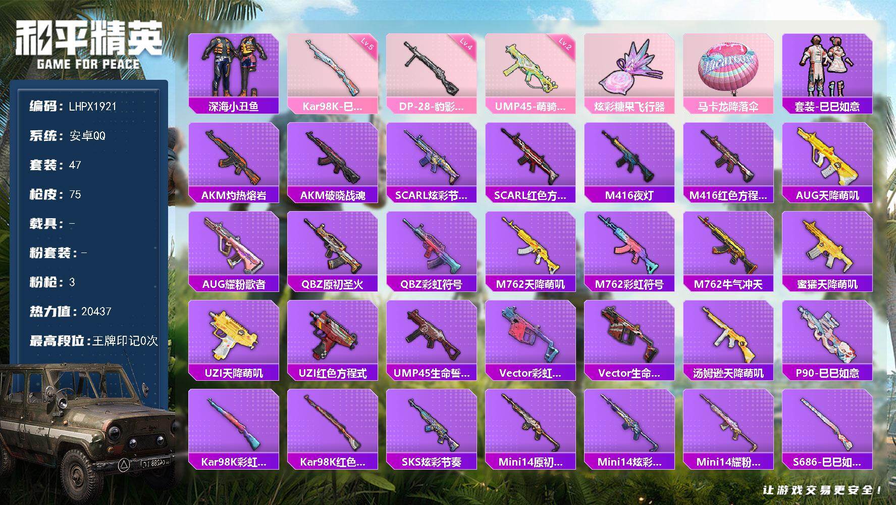 3特效枪-1粉色飞行器-20437热力值-2王牌印记-47套装-75枪皮