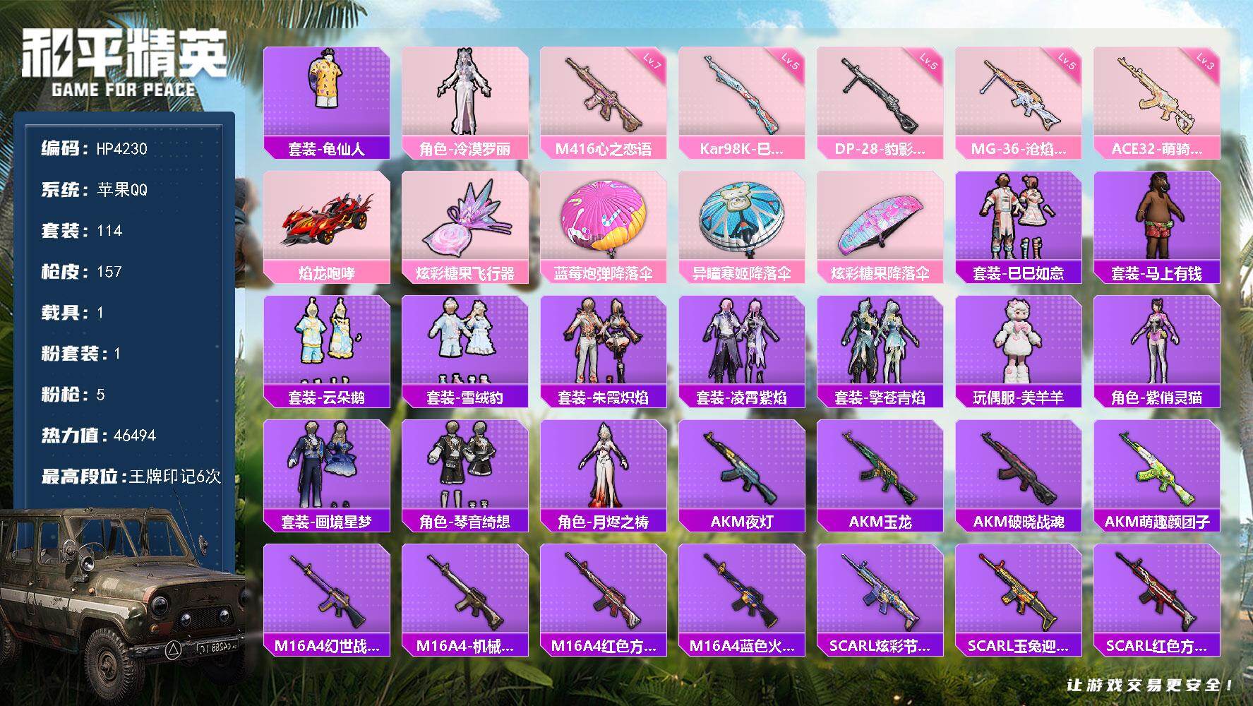6粉装-5特效枪-0载具-2粉色飞行器-46846热力值-21王牌印记-104套装-157枪皮