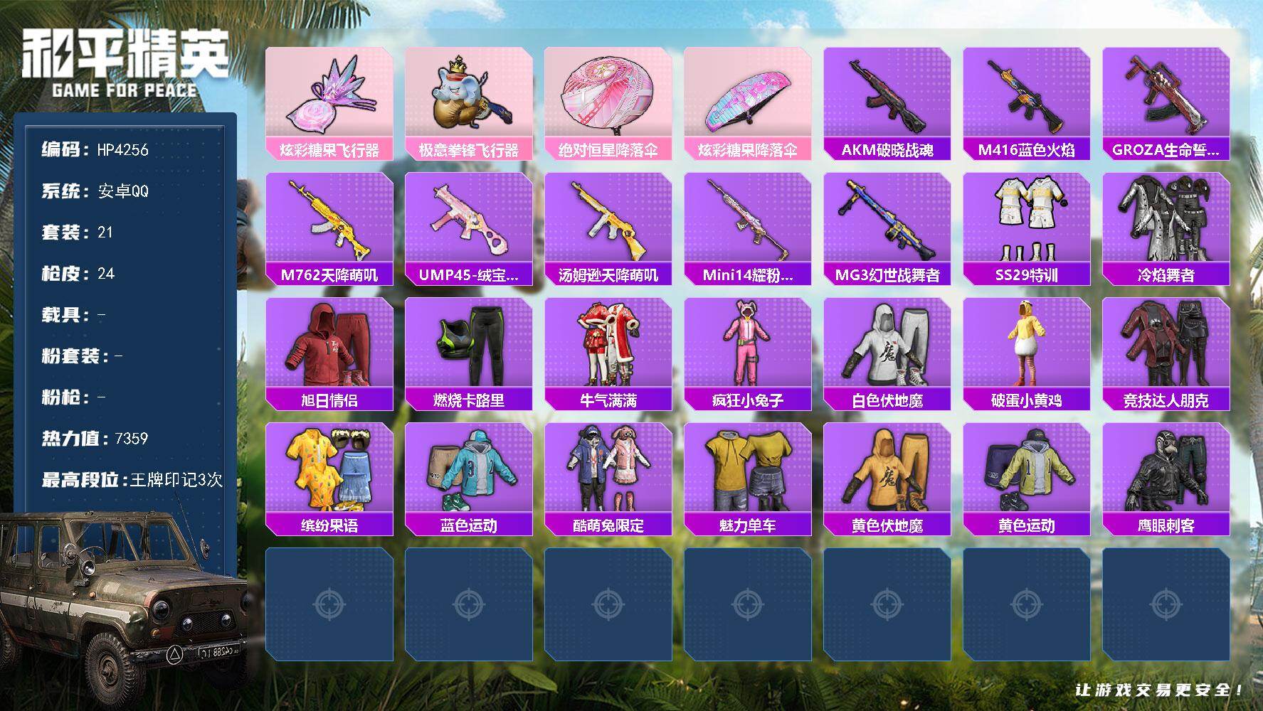 安卓 手Q-3粉装-7特效枪-0载具-2粉色飞行器-62110热力值-7王牌印