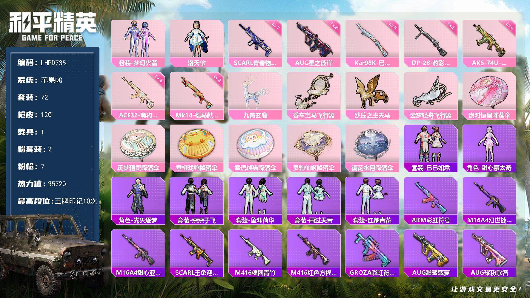 2粉装-7特效枪-1载具-3粉色飞行器-35720热力值-10王牌印记-72套装-120枪皮