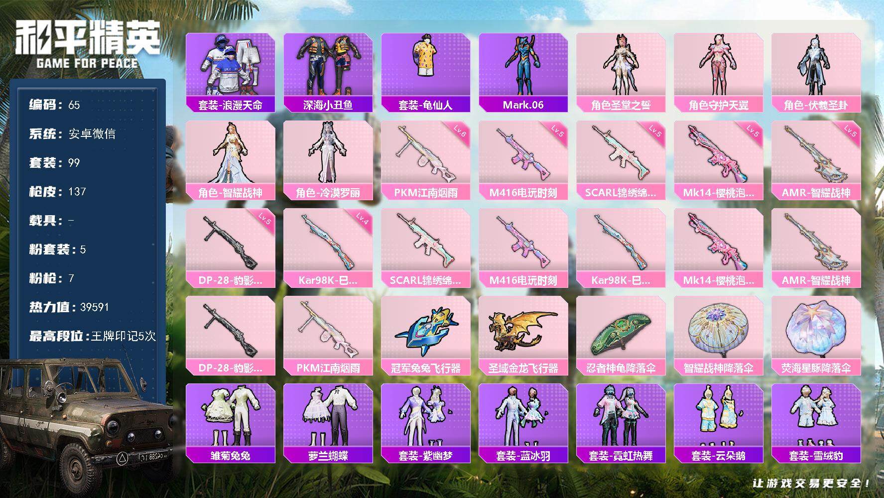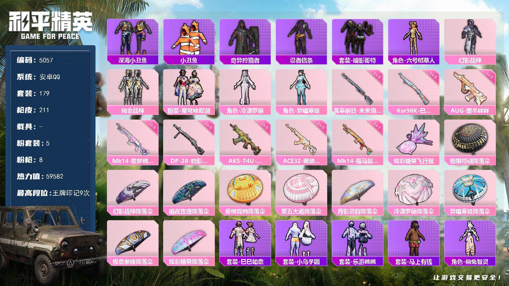 安卓 手Q-5粉装-8特效枪-0载具-1粉色飞行器-59582热力值-9王牌印记