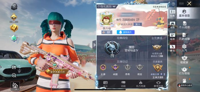 安卓 手Q-4粉装-5特效枪-0载具-1粉色飞行器-58813热力值-11王牌印