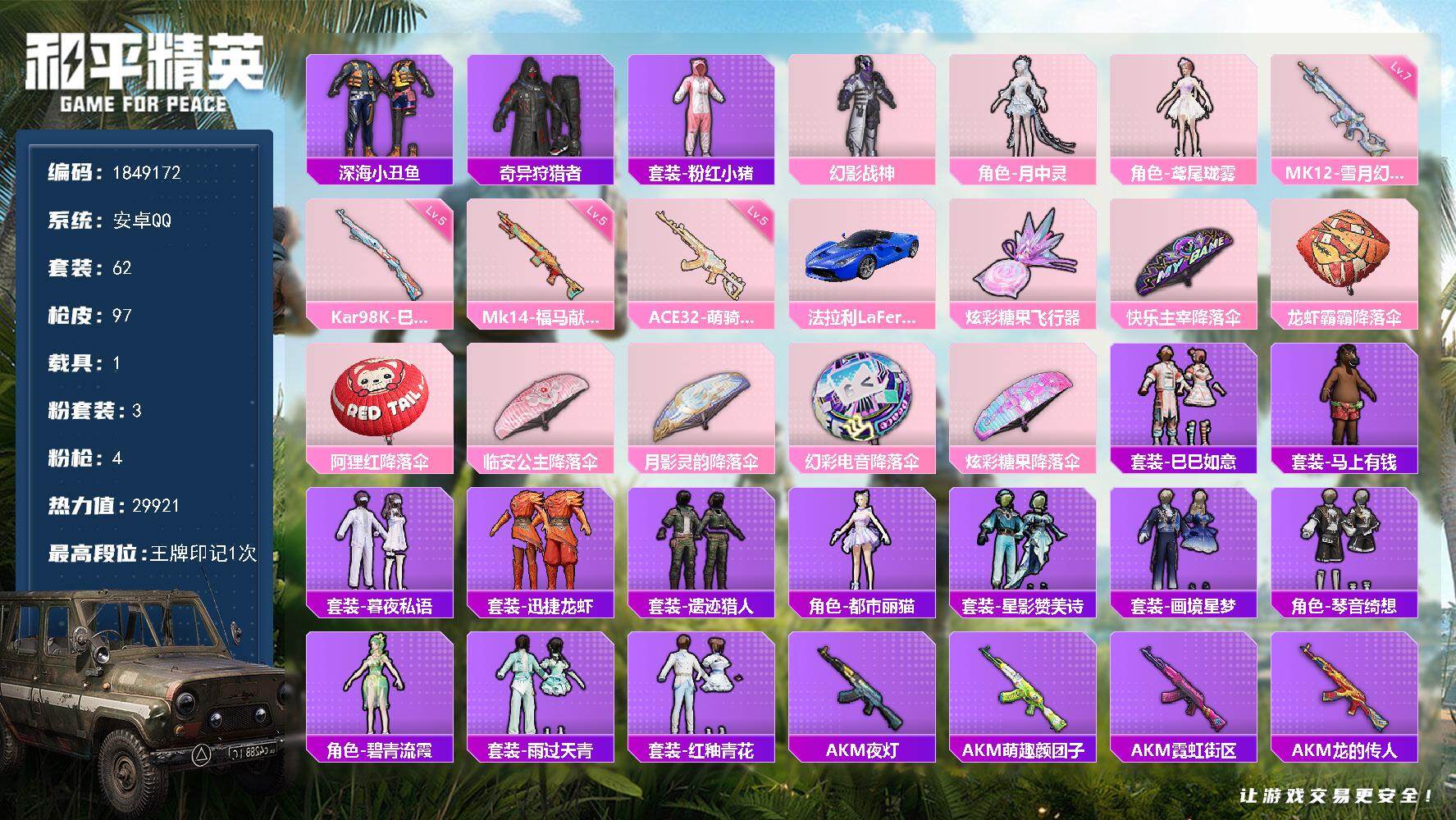 可立即换绑无需挂单养号 安卓 手Q-3粉装-4特效枪-1载具