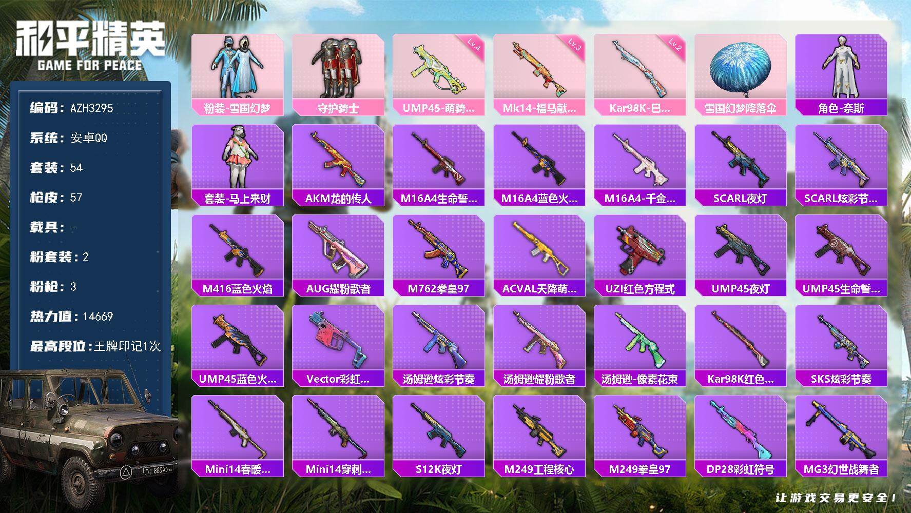 【AZH3295】安卓 手Q【雪国幻梦】2粉装-3特效枪-0载具-0粉色飞行器