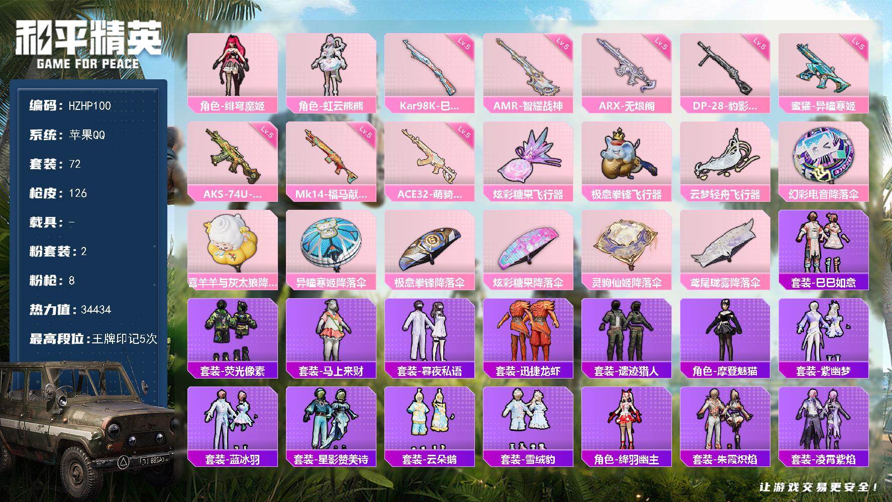hs58730 苹果手Q-22王牌印记-7粉装-3特效枪-1载具-93570热力值-242套装-27