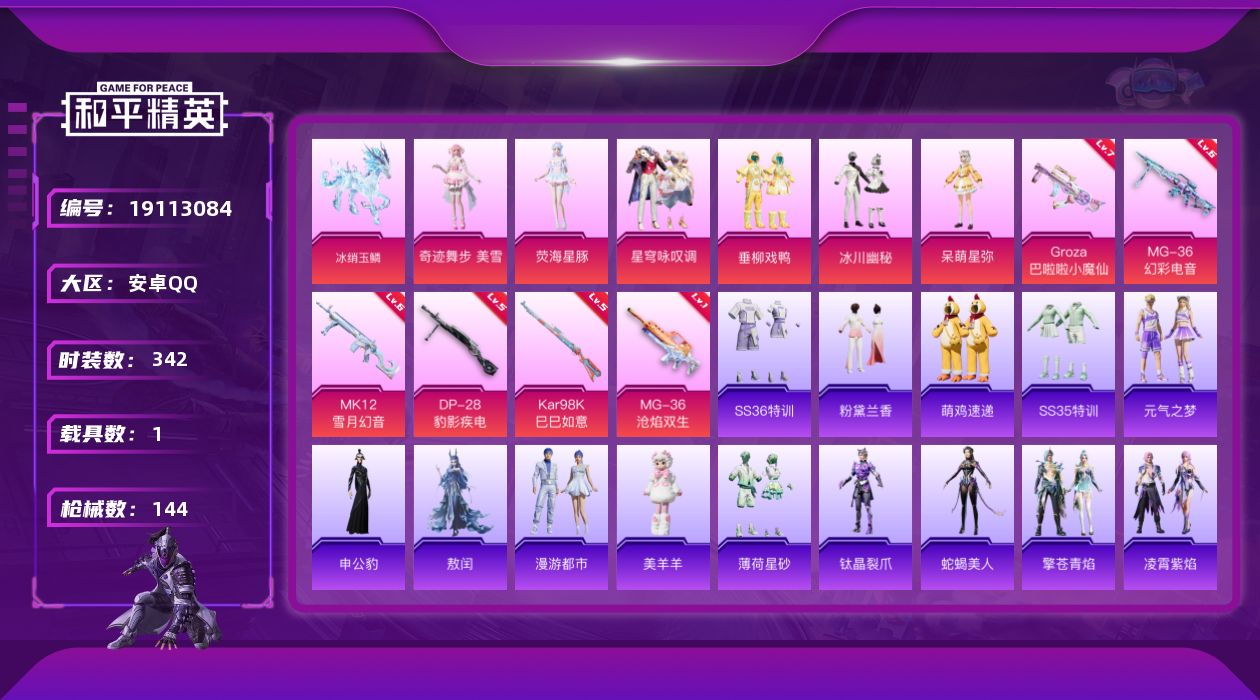 实名: 可修改 时装数: 209 枪械数: 80 战备数: 54 热门装扮: